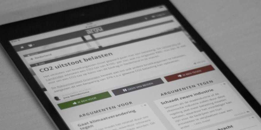 Dit project is afgerond (mei 2019). Argu is een discussieplatform dat gemeentes kunnen gebruiken om vraagstukken op gemeenteniveau aan de burgers te presenteren om de discussie te laden. Uitgangspunt van dit project was om met Argu Open Data een open dataplatform in te richten waarmee burgers inzage krijgen in vergaderingen, moties, amendementen en stemmingen in gemeenteraden en Tweede Kamer. Open Data is nog niet live, door de vertraging die is ontstaan bij het open data portal van de Tweede kamer. Toch zijn er stappen gezet in het toegankelijker en transparanter maken van de Nederlandse politiek. Tijdens de loop van het project is samen met Open State Foundation gewerkt aan Open Raadsinformatie met daarin meer dan 100 gemeenten en oplopend tot 200+ dit jaar. In de betaversie van Open Raadsinformatie zitten ook al de moties van de Tweede Kamer, die zijn geïmporteerd dankzij samenwerking met stemwijzer.nl. Zo wordt toegewerkt naar een gestandaardiseerd punt voor alle Nederlandse besluitvorming van overheden.